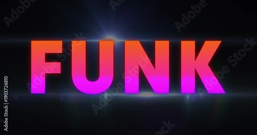 © vectorfusionart, Fototapeta premium Displaying bold 3D text reading FUNK, glowing with neon gradient in studio, with lens flares