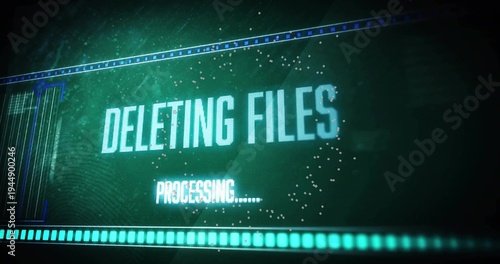Fototapeta premium Displaying central DELETING FILES text pulsing on system console showing...