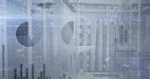 Obraz premium Displaying central server racks operating in data center, with Ethernet...
