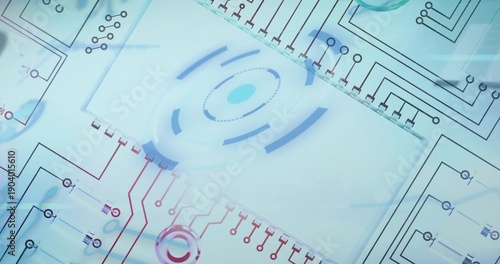 Naklejka premium Displaying central translucent panel showing concentric rings and circuit...
