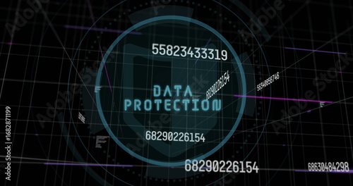 © vectorfusionart, Obraz premium Displaying circular digital interface over data grid, with shield icon and numeric code sequences