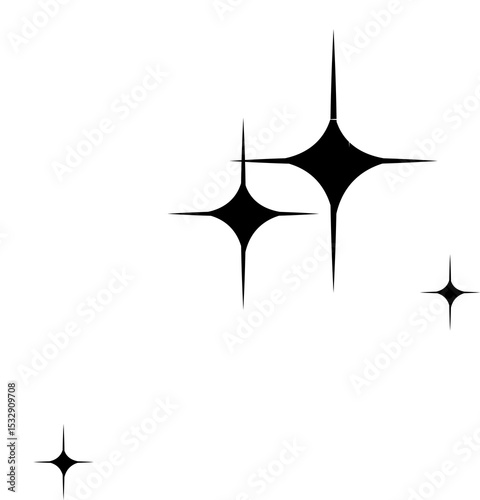 © vectorfusionart, Obraz premium Displaying flat vector stars and sparkle shapes in black and white over transparent background