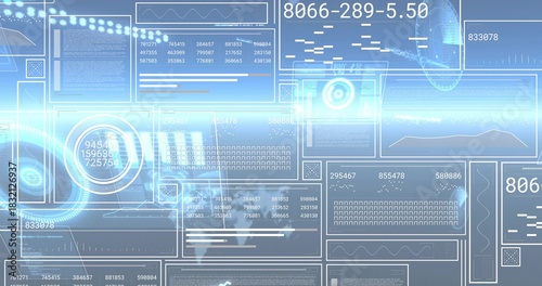 Obraz premium Displaying futuristic dashboard showing translucent panels, radar dials and...