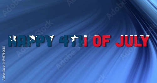 Naklejka premium Displaying HAPPY 4TH OF JULY text with American flag pattern on blue swirl at...