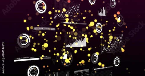 Obraz premium Displaying HUD in virtual dashboard showing line and area charts, circular timers, yellow particles