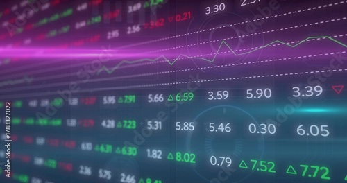 Fototapeta premium Displaying layered digital dashboard showing market data on-screen, with numeric tickers and HUD