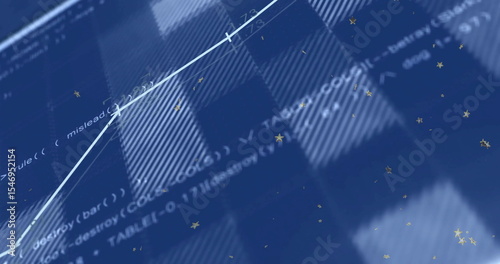 Fototapeta premium Displaying light-blue line graph rising on digital dashboard, with code text and golden stars