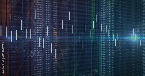 © vectorfusionart, Obraz premium Displaying market data visualization on trading screen, showing candlesticks, price markers