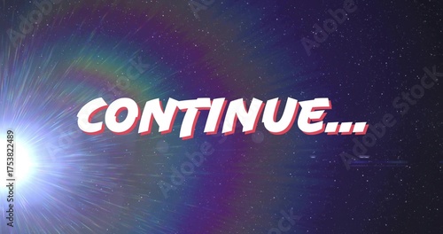 Fototapeta premium Displaying stylized text CONTINUE… over starfield backdrop with vibrant lens...