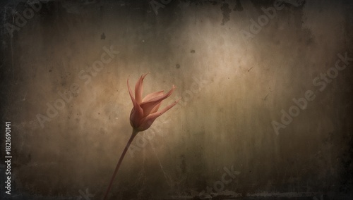 Obraz premium Displaying tulip-like flower leaning in studio, with slender stem, textured backdrop, copy space