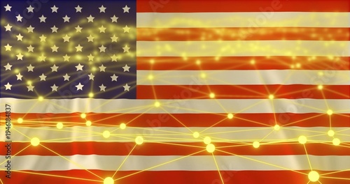 Naklejka premium Displaying US flag as digital art layered with glowing gold nodes, thin lines...
