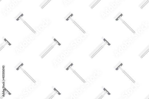 Fototapeta premium Disposable razor seamless pattern. Colorful plastic disposable razors Design for wrapping paper, poster banner and more for what.