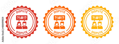 Obraz premium Dispute icon on round badge design. Argue, quarrel or angry icon set.