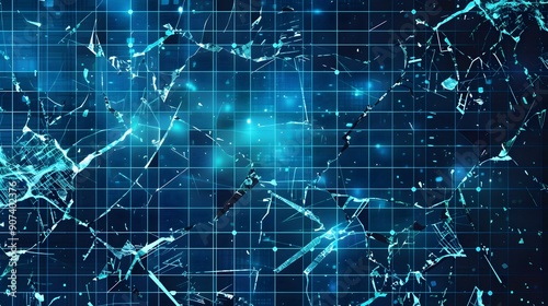 Obraz premium Disruptive Digital Glitch Patterns with Cracked Screen Effect Background