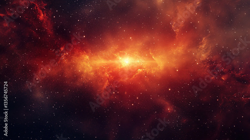© Leo, Fototapeta premium Distant blazar radiating intense light, surrounded by cosmic dust, a mysterious early universe phenomenon.