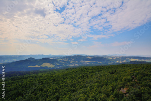 © SebVoj, Fototapeta premium Distant Czech Forested Hills Under Light Clouds and Clear Daylight