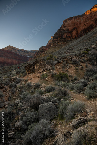 Fototapeta premium Distant Hiker Climbs Hill Along Tonto Trail