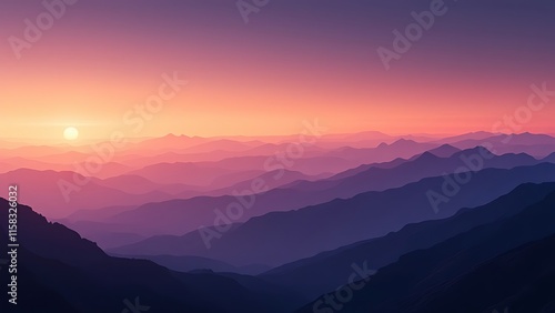 Fototapeta premium Distant mountain peaks layers at sunrise. Pattern of mountains silhouettes...