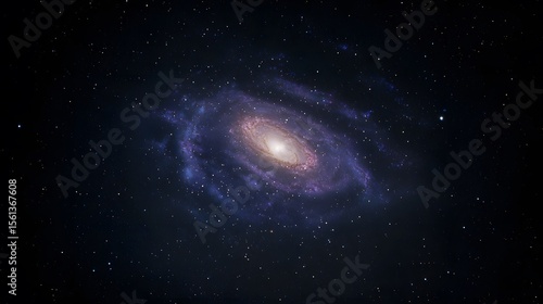 Naklejka premium Distant spiral galaxy glowing arms in interstellar dust