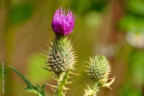 © Manfred Richter, Obraz premium Distel mit Blüte in pink
