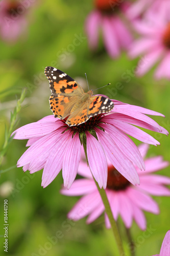 Fototapeta premium Distelfalter, Vanessa cardui, auf Echinacea Blüte