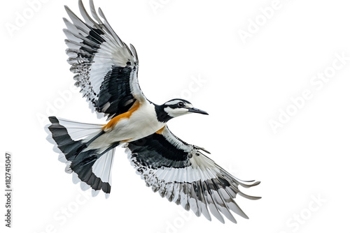 © CrazeePixelINC, Fototapeta premium Distinctive Lapwing Bird Flying Extreme Side View Isolated White Background