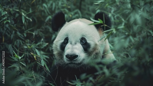 © sambath, Fototapeta premium Distinctive panda captured in a playful moment.