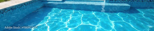 © chaikrit, Obraz premium Distorted blue pool water, dramatic surface tear, dramatic, ripped