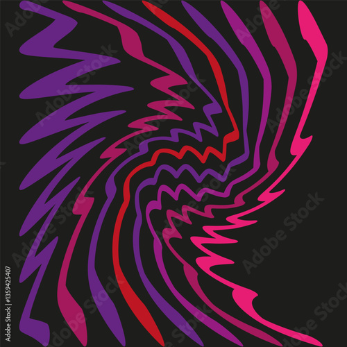 © Сергей Полякевич, Obraz premium Distorted colorful lines. Abstract wave pattern. Black background vector. Dynamic vibrant movement.