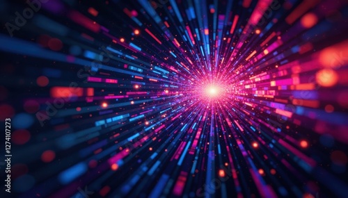 Naklejka premium Distorted LED screen, colorful pixel burst, abstract digital glitch,...