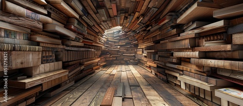 Fototapeta premium distorted wood bookshelf. with copy space image. Place for adding text or design