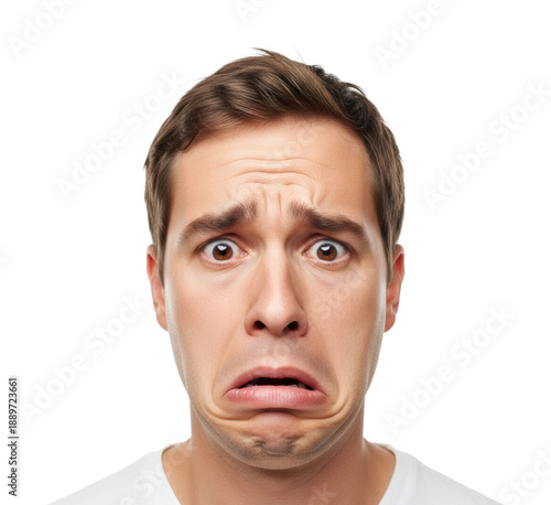 Fototapeta premium Distress emotion reaction portrait isolated on transparent background