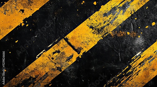 Naklejka premium Distressed Black and Yellow Diagonal Stripes, Grunge Texture