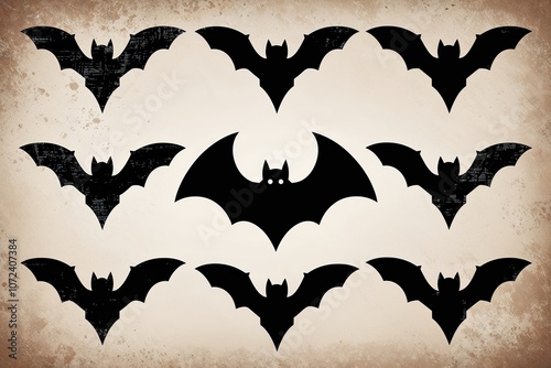 Fototapeta premium Distressed Black Bat Silhouette Set for Halloween Decorations