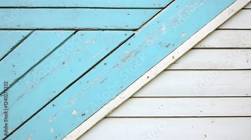 © Fozle, Fototapeta premium Distressed Blue and White Wooden Wall Texture Background