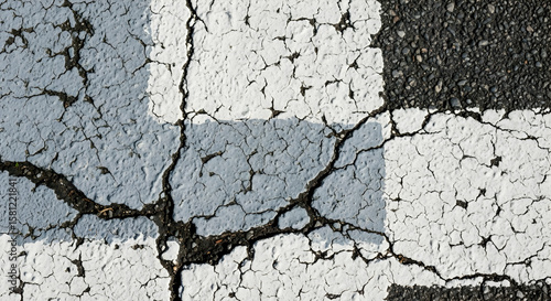 Fototapeta premium Distressed Concrete Surface With Abstract Geometric Pattern And Crack Lines