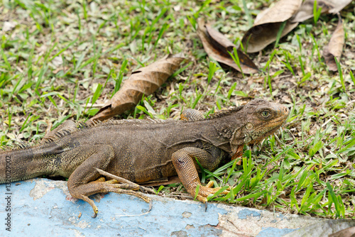 © Brenda, Fototapeta premium Distressed Iguana with Visible Injuries