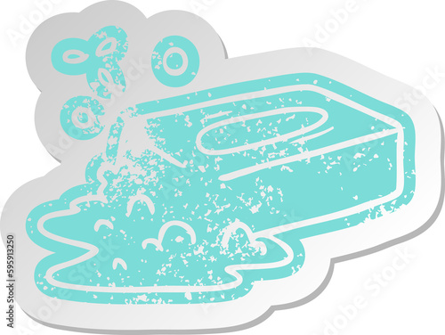 Fototapeta premium distressed old cartoon sticker of a bubbled soap