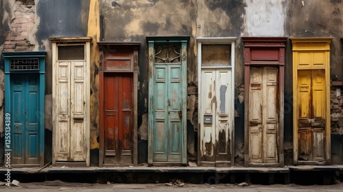 © vectorwin, Naklejka premium distressed old wooden doors