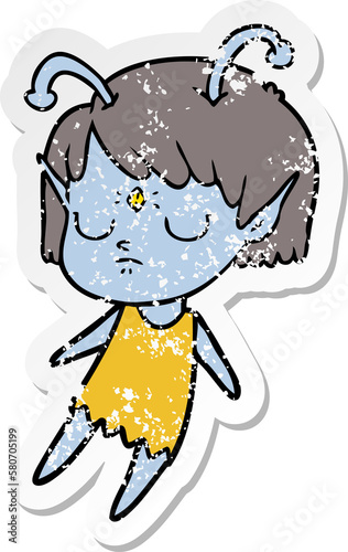 © lineartestpilot, Fototapeta premium distressed sticker of a cartoon alien girl