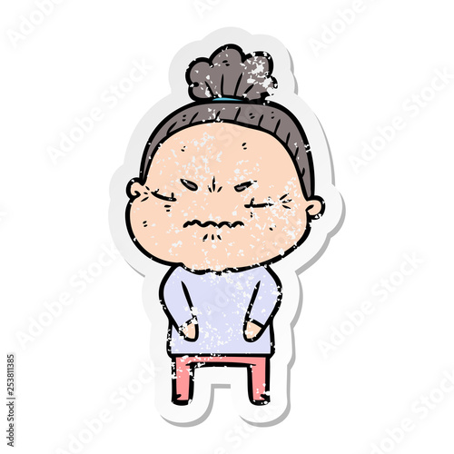 Obraz premium distressed sticker of a cartoon annoyed old lady