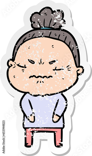 Obraz premium distressed sticker of a cartoon annoyed old lady