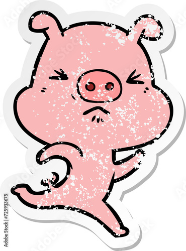Fototapeta premium distressed sticker of a cartoon annoyed pig running