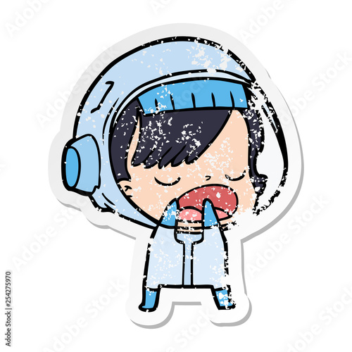 Obraz premium distressed sticker of a cartoon astronaut woman explaining