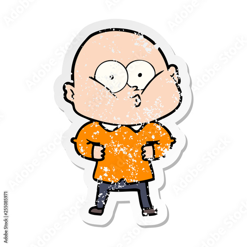 Obraz premium distressed sticker of a cartoon bald man staring