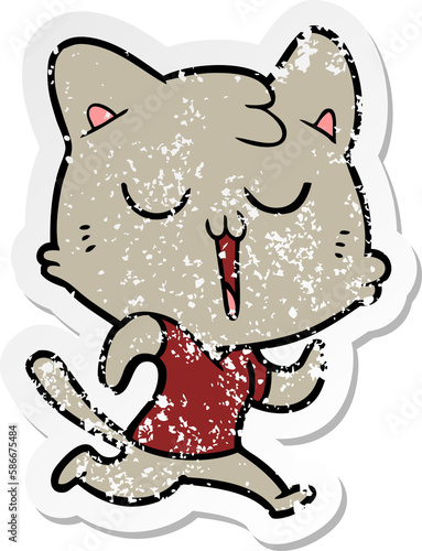 Fototapeta premium distressed sticker of a cartoon cat singing