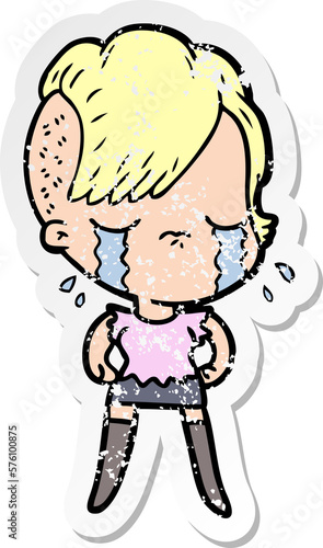 Obraz premium distressed sticker of a cartoon crying girl