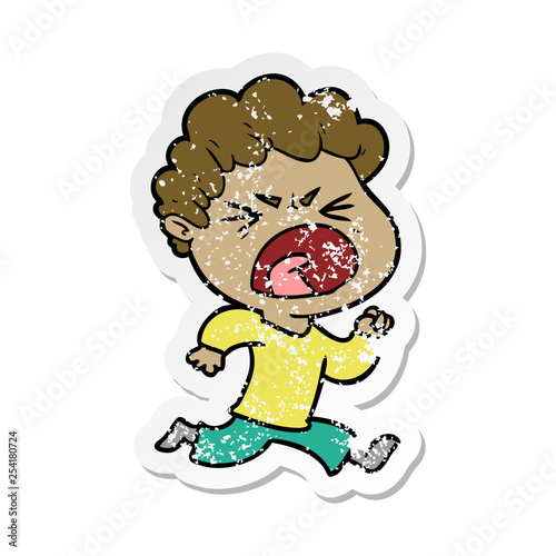 © lineartestpilot, Obraz premium distressed sticker of a cartoon furious man