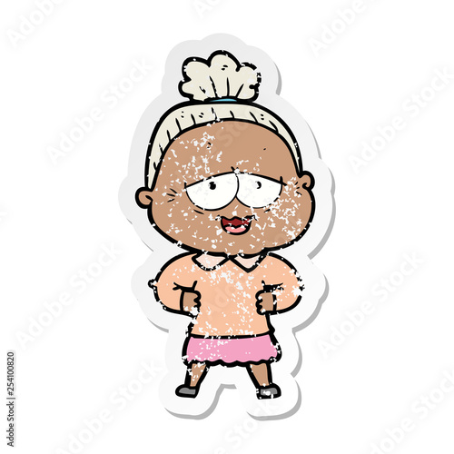 © lineartestpilot, Obraz premium distressed sticker of a cartoon happy old lady
