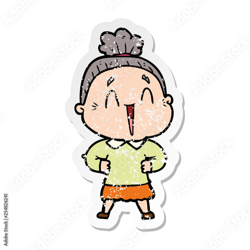 © lineartestpilot, Obraz premium distressed sticker of a cartoon happy old lady